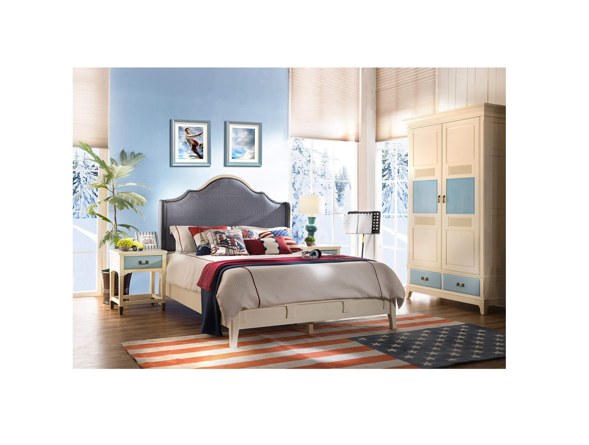 CTG-107床頭柜白+藍