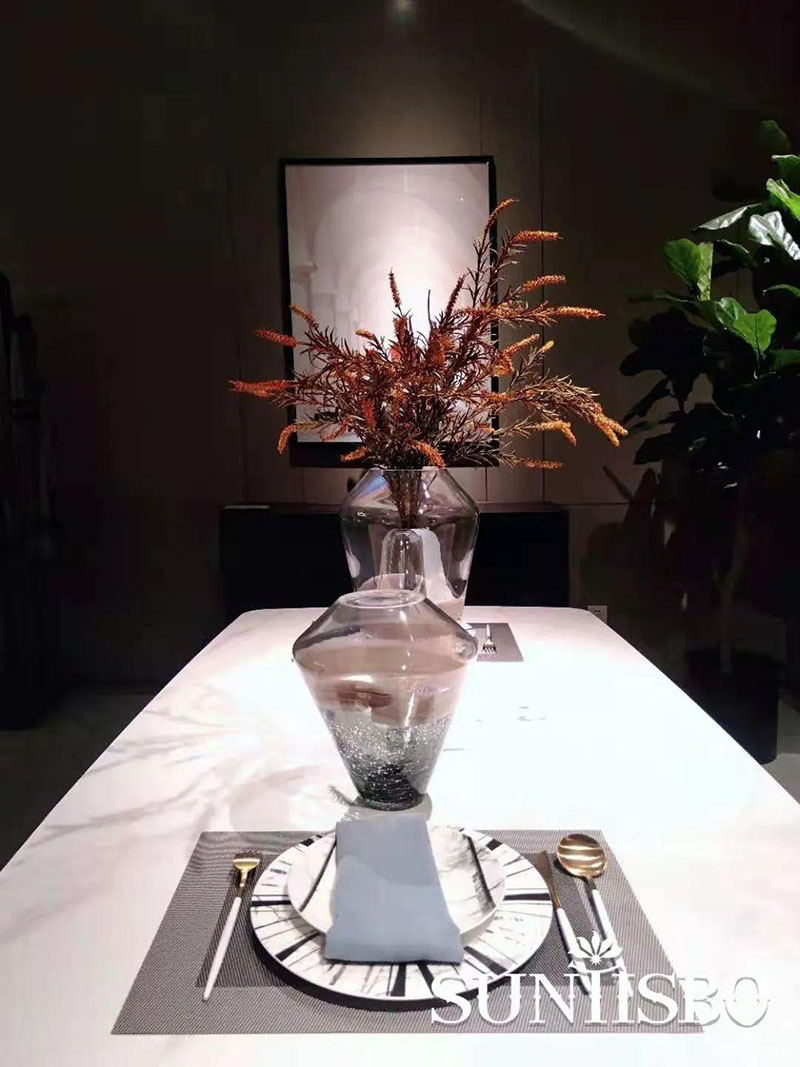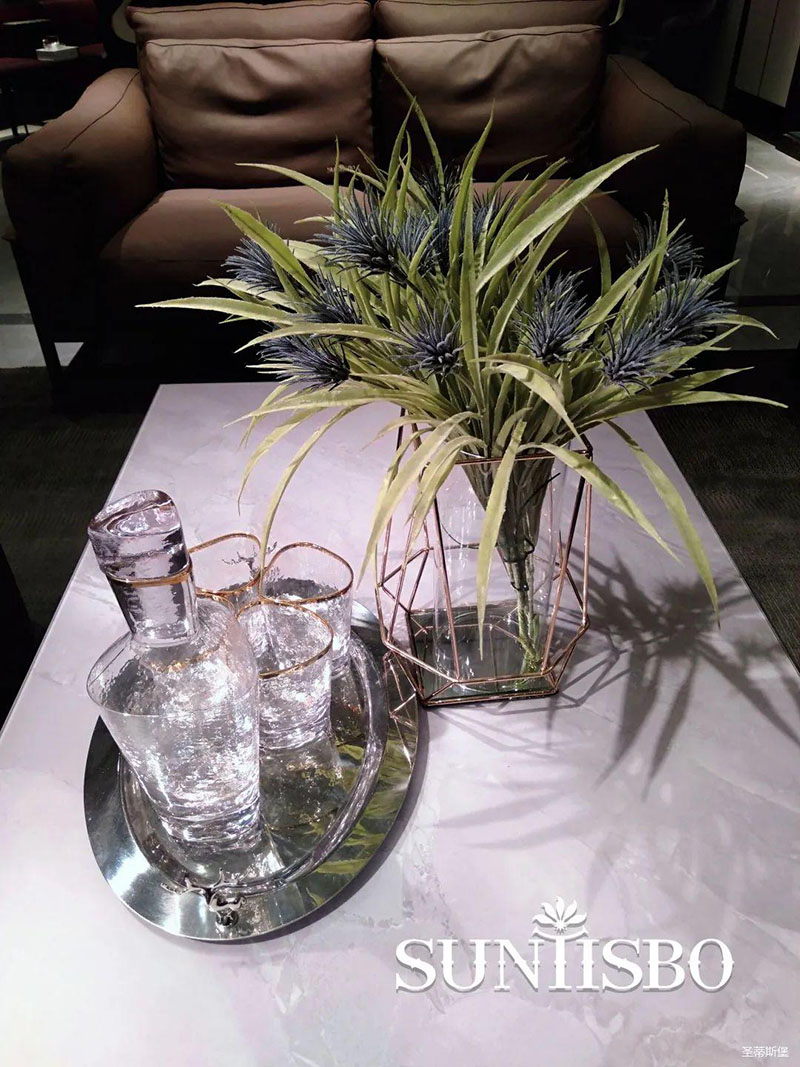 3.輕奢的配飾也需邀來似錦繁花相稱。色彩跳脫的植物更為亮眼,讓自然界的色彩與姿態(tài)應(yīng)和空間之間的協(xié)調(diào),傳遞空間與情感的共鳴。