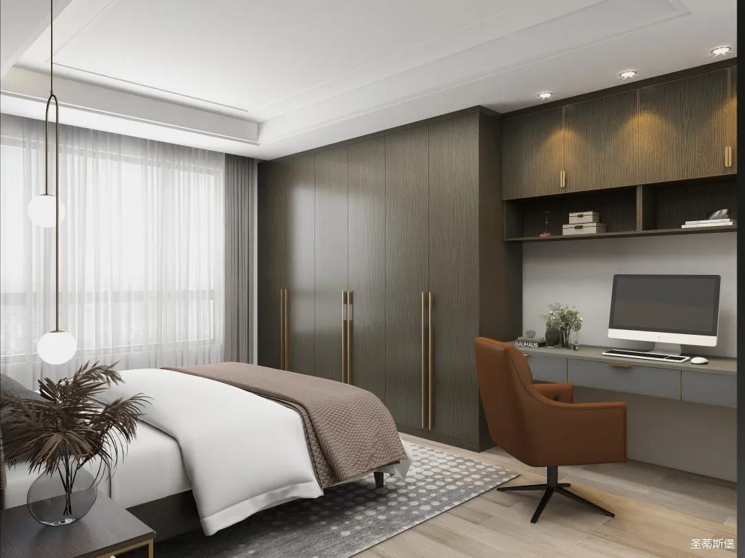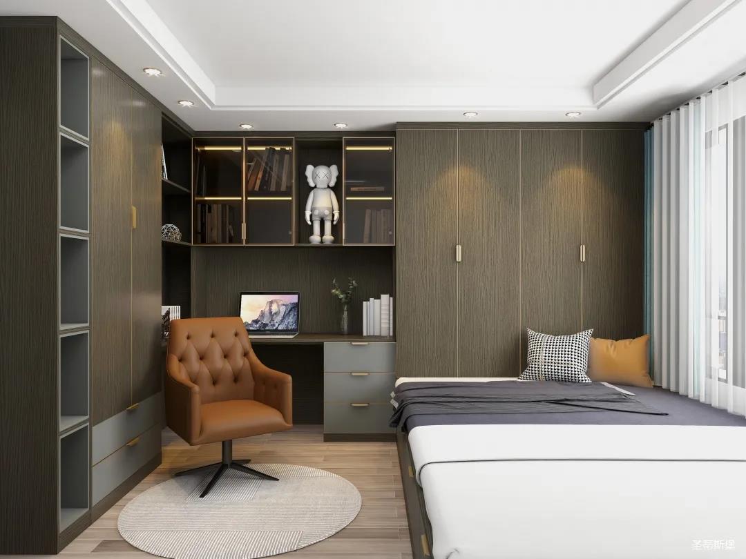 別具一格的定制,都是通過高級材質(zhì)與色彩來展現(xiàn)極簡摩登生活。一字型衣柜+書桌設(shè)計,打造了“簡而不減”的別致空間。深邃的灰色系定制為空間注入現(xiàn)代都市風情,在品位簡約中彰顯奢華氣質(zhì)!