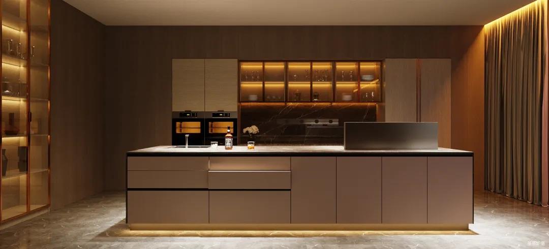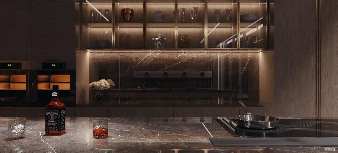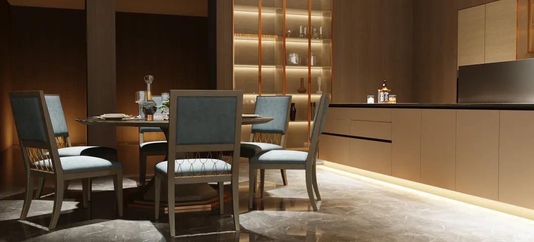 餐廚的極簡(jiǎn)也可兼具多元,以一字內(nèi)嵌式展開的廚區(qū)收納柜,兼顧了從杯具、調(diào)料等廚用材料收納到廚電歸置動(dòng)線功能處理。在展示區(qū)域,玻璃隔板組合實(shí)木定制柜的表現(xiàn)形式,更是提升了空間的明亮度與寬闊感。