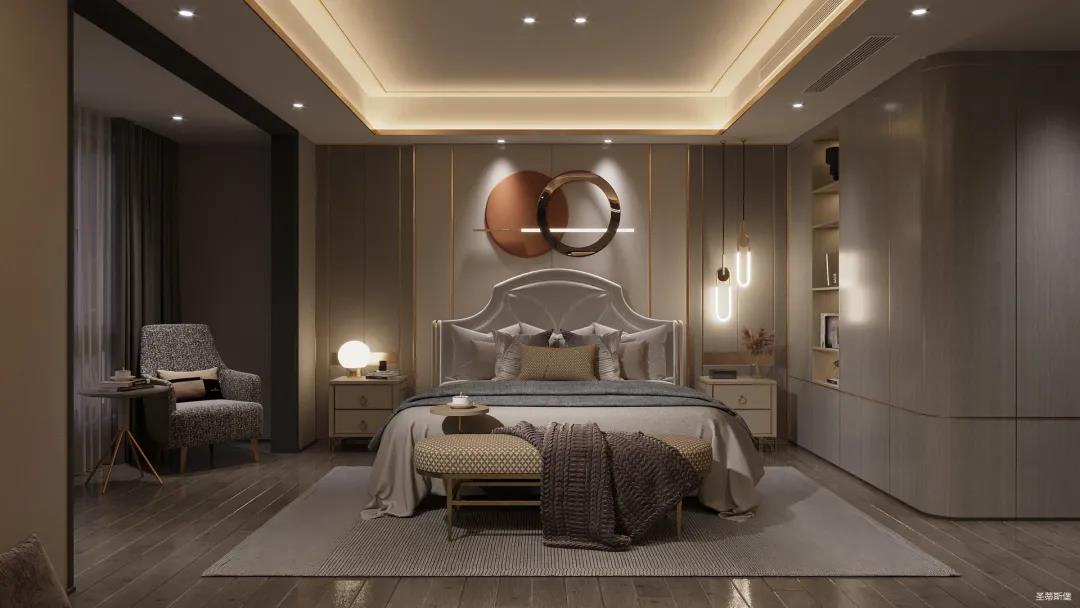 臥室空間整體以護(hù)墻板定制為主,整體設(shè)計(jì)注重空間簡(jiǎn)約、自然,沒有繁雜的裝飾。結(jié)合業(yè)主對(duì)理想家的想象,采用暖色調(diào)來(lái)襯托溫馨實(shí)感,延伸業(yè)主對(duì)家的定義,用最質(zhì)樸的木紋融合極簡(jiǎn)線條平鋪的形式,體悟自然的溫度,為都市生活帶去不一樣的體驗(yàn)感。