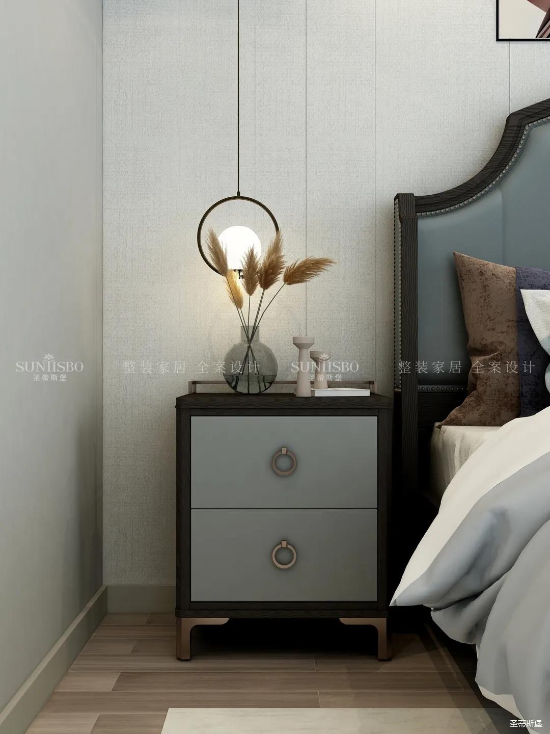 主臥整體暖色色系為空間注入了專屬調(diào)性,高明度的家具色彩與整體空間區(qū)分,透過材質(zhì)肌理與光線相互交疊,傳達著空間里安定溫暖的情緒。立體輕奢的床尾凳,提示著空間主人對時尚的高質(zhì)量生活追求。