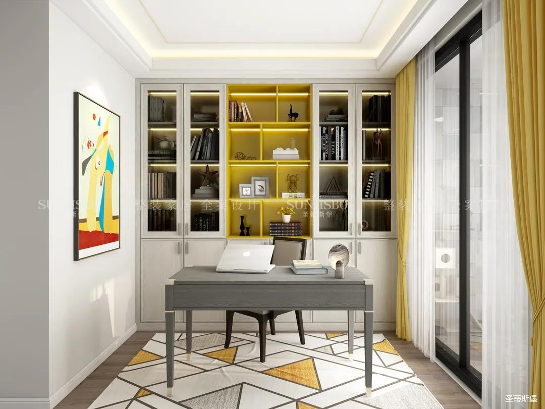 在書房中,目之所見,從空間到陳設(shè),色調(diào)由淺及深,在硬朗與柔軟、明亮與暗啞之間合理切換,精心雕琢出層次感。時尚高雅的色調(diào)變化和家具的紋理在線條的交錯下,相互交匯出美學(xué)與功能的書房空間,簡單的臨窗觀景,讓身心即刻得到放松。