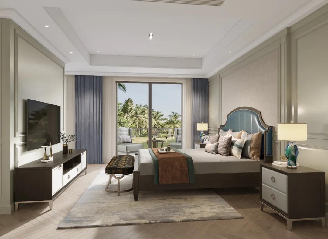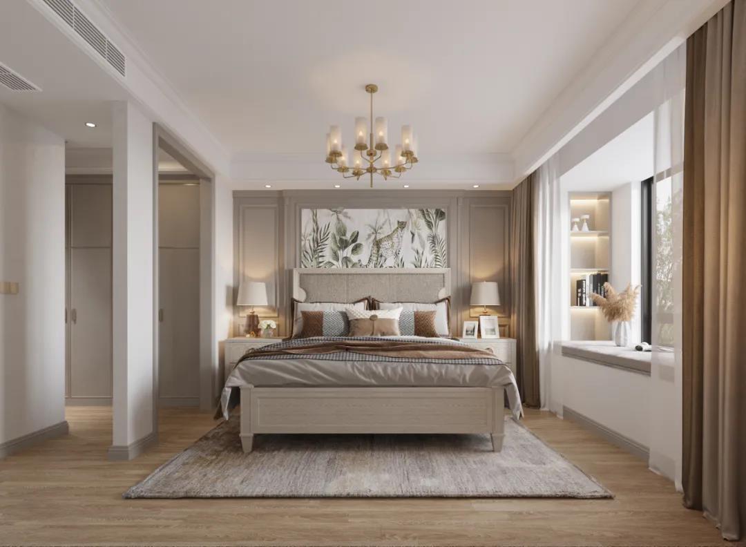 主臥以線條元素做主導(dǎo),軟包的床頭墻面充滿安全感,浮雕的造型給空間布局帶來了極佳的層次感,以現(xiàn)代美式輕奢框架為主題,融入了美式靈動的線條,讓整個臥室既有時尚質(zhì)感,又有時光打磨后的穩(wěn)重。