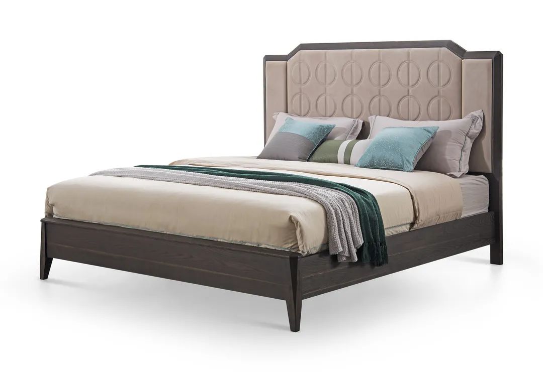 里奧系列臥房空間,意式美學(xué)與古都文化的碰撞在這款床上展現(xiàn)的淋漓盡致,兩種迥異的恢弘文明得以融合。實木煙熏色的框架立體分明,帶點灰度的淺粉色溫柔雅致,輕松營造舒適家。