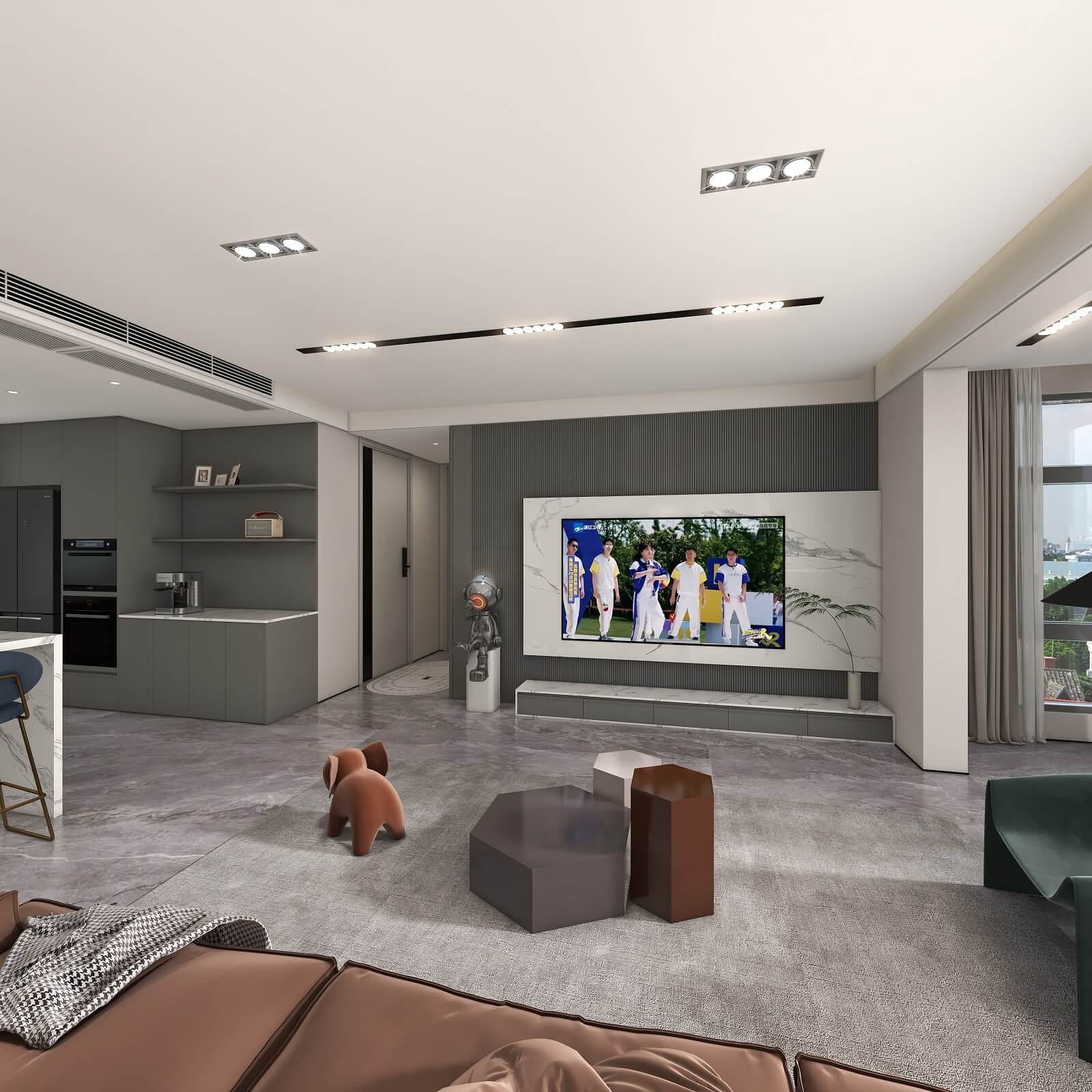 全面開放式格局,讓客餐廳之間相互聯(lián)動(dòng),毫無阻隔,在提升體驗(yàn)感的同時(shí),也增強(qiáng)了整體采光和通風(fēng)。